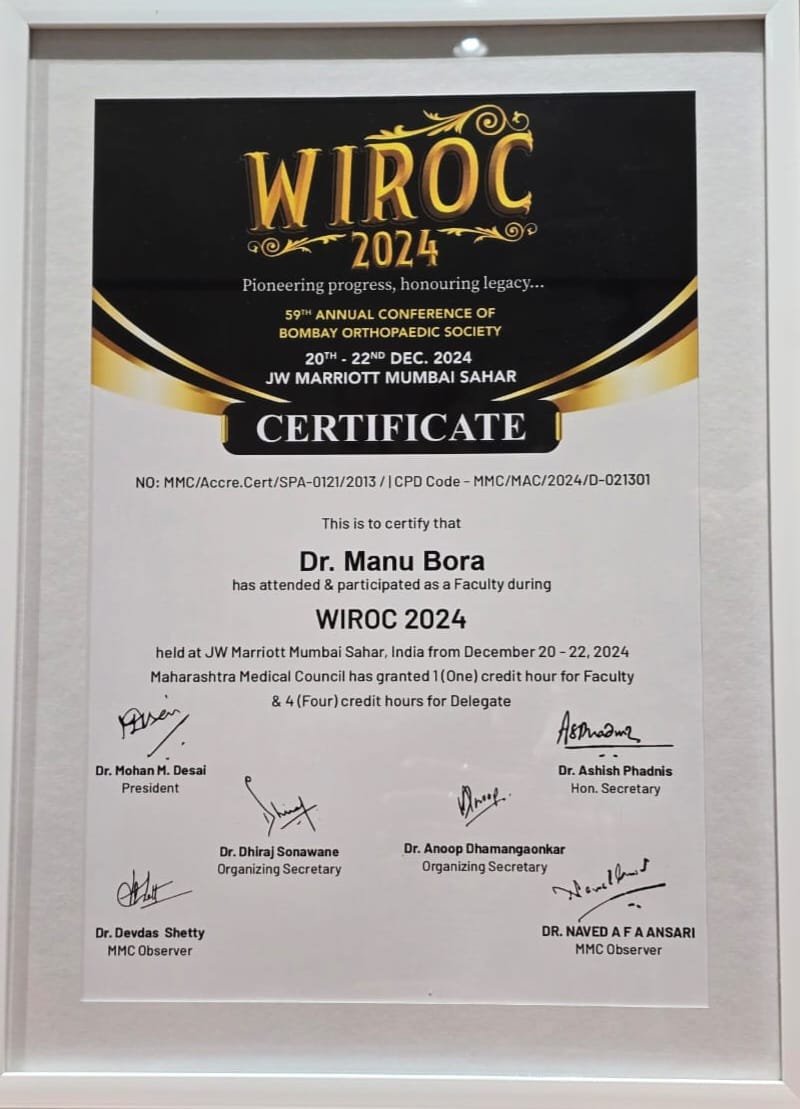 Awards & Accolades - Dr Manu Bora (Founder- Orthosport)